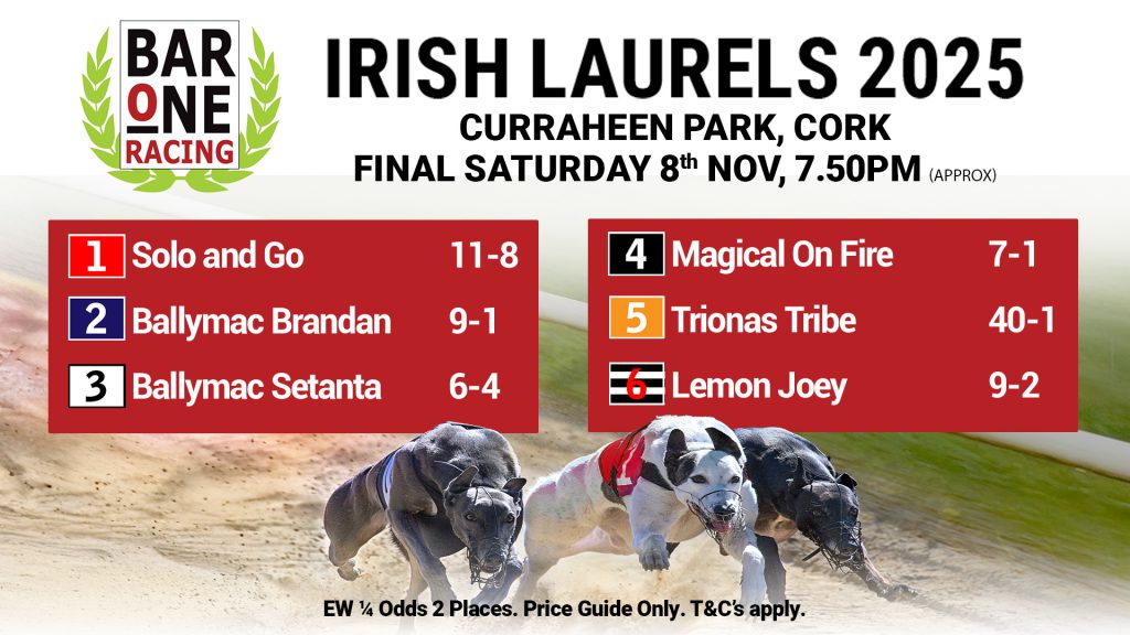 The countdown is on for the 2025 Bar One Racing Irish Laurels Final, which takes place this Saturday night at Curraheen Park. A top-class six-dog line-up will go to traps in what promises to be one of the standout greyhound racing events of the year.