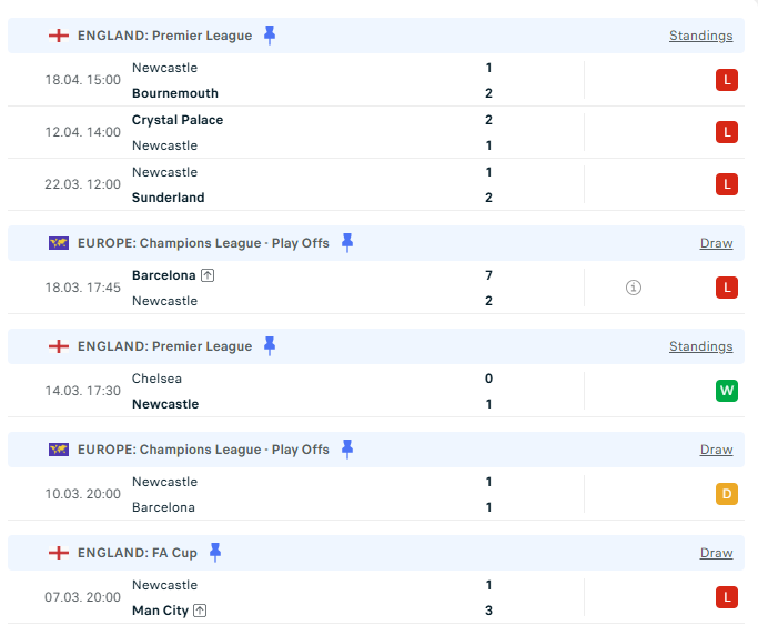 Scorers in their last 10 games, all comps, have been Anthony Gordon (3 goals), Anthony Elanga (2), Harvey Barnes (2), with one apiece for Jacob Ramsey, Jacob Murphy, Sandro Tonali, Joelinton and Sven Botman have been their other scorers.
