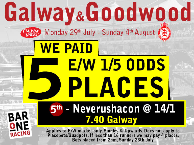 5Places740GalwayResult Posted By: Will Reilly 30th July 2019 Please gamble responsibly, for more information click here*Odds were correct at time of publishing the article
