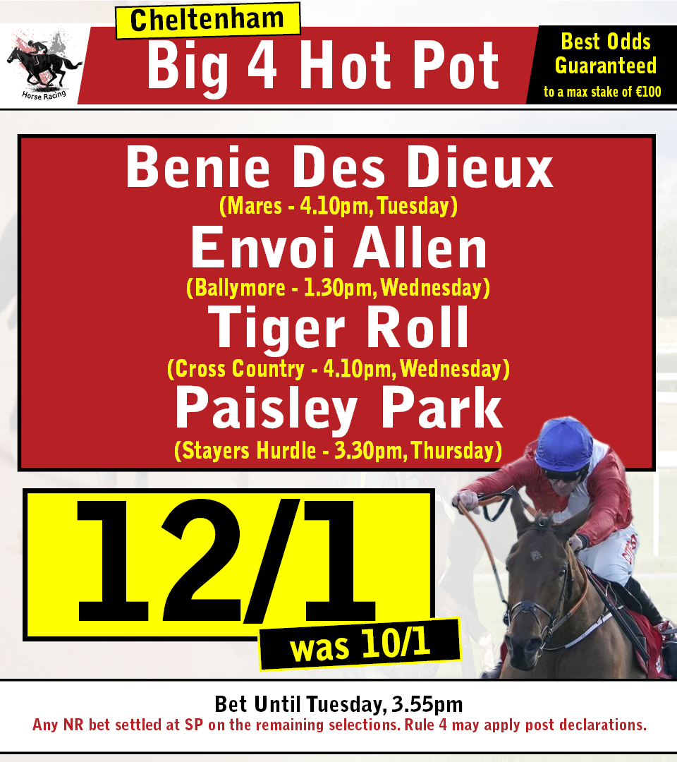 CheltenhamBig4HotPotHalfScreen Posted By: Will Reilly 9th March 2020 Please gamble responsibly, for more information click here*Odds were correct at time of publishing the article