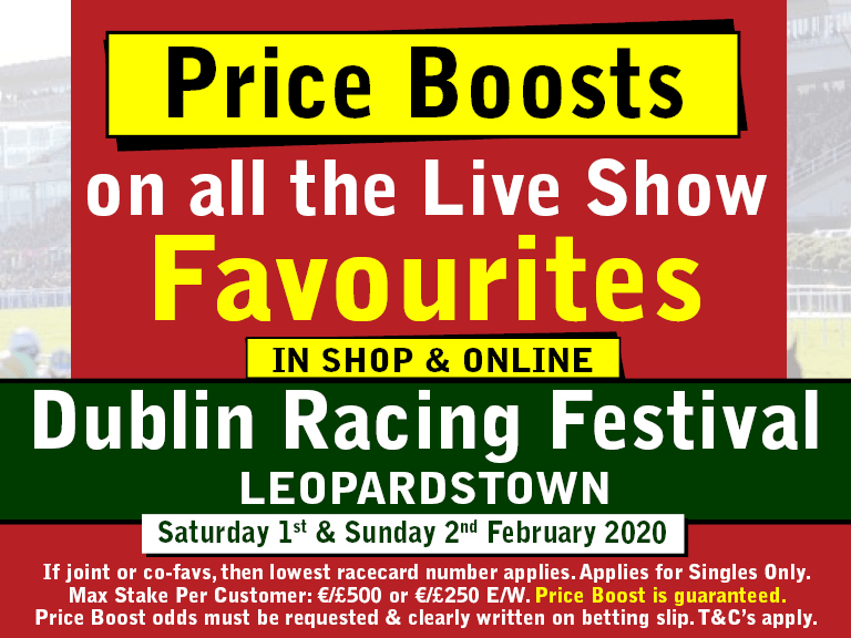 DublinRacingFestivalPriceBoost Posted By: Will Reilly 31st January 2020 Please gamble responsibly, for more information click here*Odds were correct at time of publishing the article