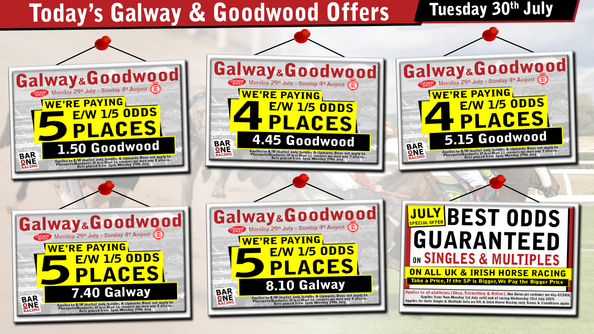 GalwayandGoodwoodTodaysOffers Posted By: Will Reilly 30th July 2019 Please gamble responsibly, for more information click here*Odds were correct at time of publishing the article