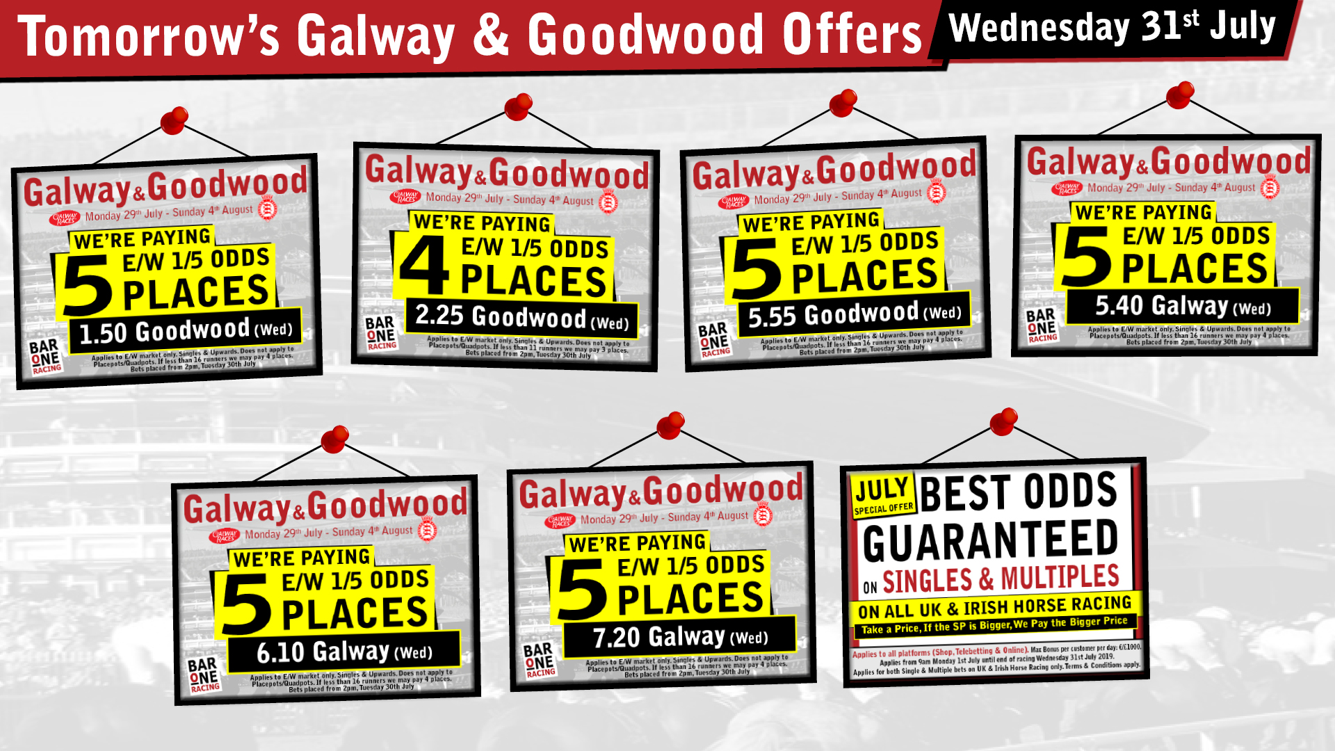 GalwayandGoodwoodTomorrowsOffersWed Posted By: Will Reilly 30th July 2019 Please gamble responsibly, for more information click here*Odds were correct at time of publishing the article