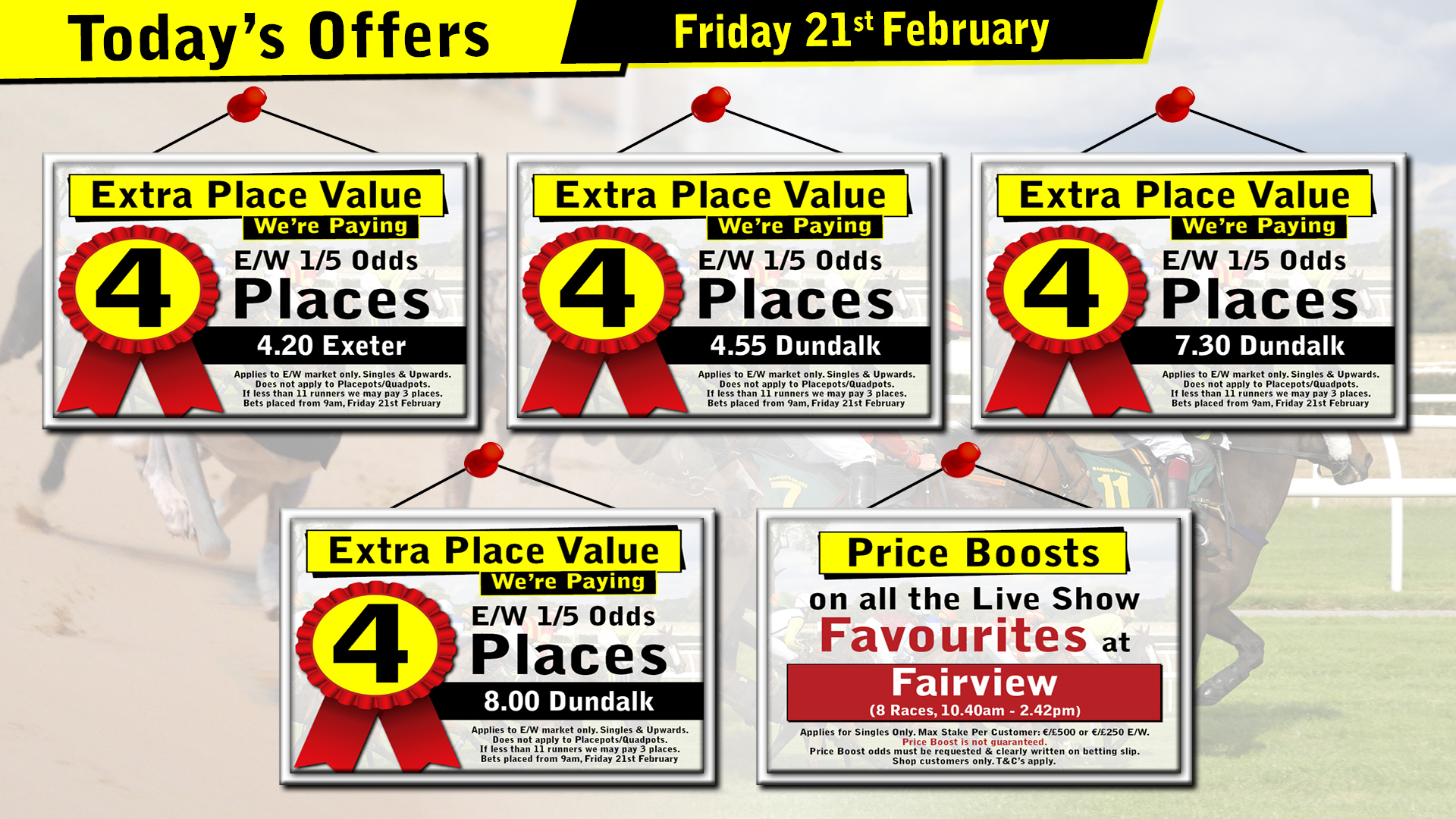 Todays5Offers21stFeb Posted By: Will Reilly 21st February 2020 Please gamble responsibly, for more information click here*Odds were correct at time of publishing the article